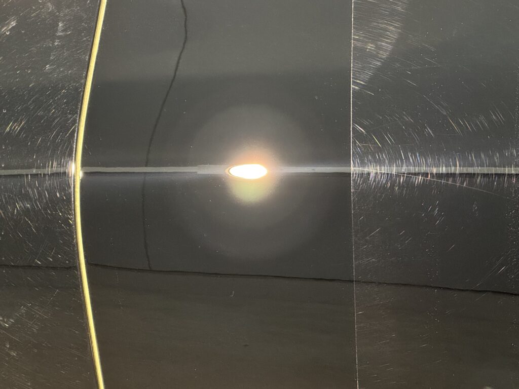 全体的に洗車機キズが多く、本来の黒がくすんで見える状態です。